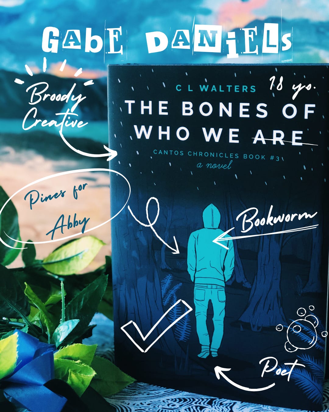 His book is The Bones of Who We Are, the culmination of this entire story. If you’re familiar with the Cantos Chronicles trilogy, you know that Gabe wrote in his journal, and he wrote a lot of poetry which you’ll find in The Bones of Who We Are.